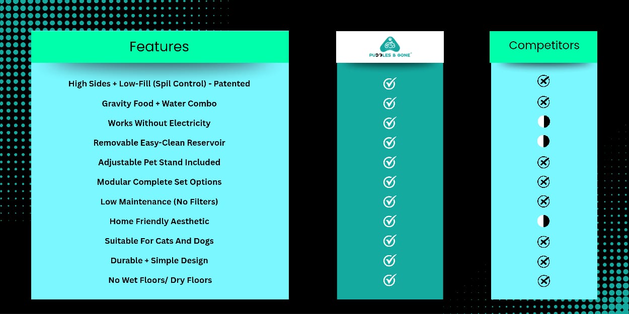 Puddles-B-Gone is an innovative water dispenser designed to prevent spills and keep your floors dry while providing a reliable source of hydration for your pets
